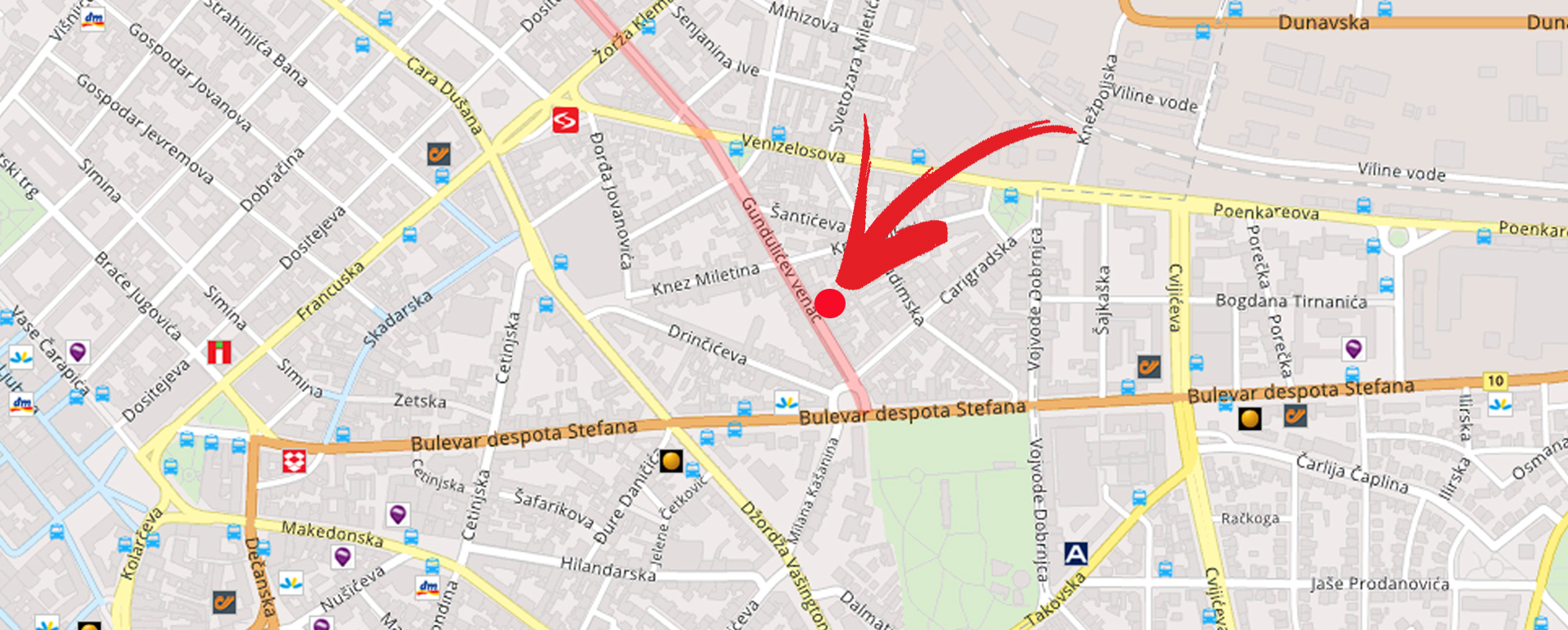 We are located at Gundulićev venac in Belgrade (Stari grad municipality), so you can reach us easily, no matter where you are in the city. Our agency is just a 10-minute walk from Trg Republike (Republic Square) and only 20 metres from Bulevar despota Stefana. The entrance to the building is right next to the post office so you won’t have any problems finding us.